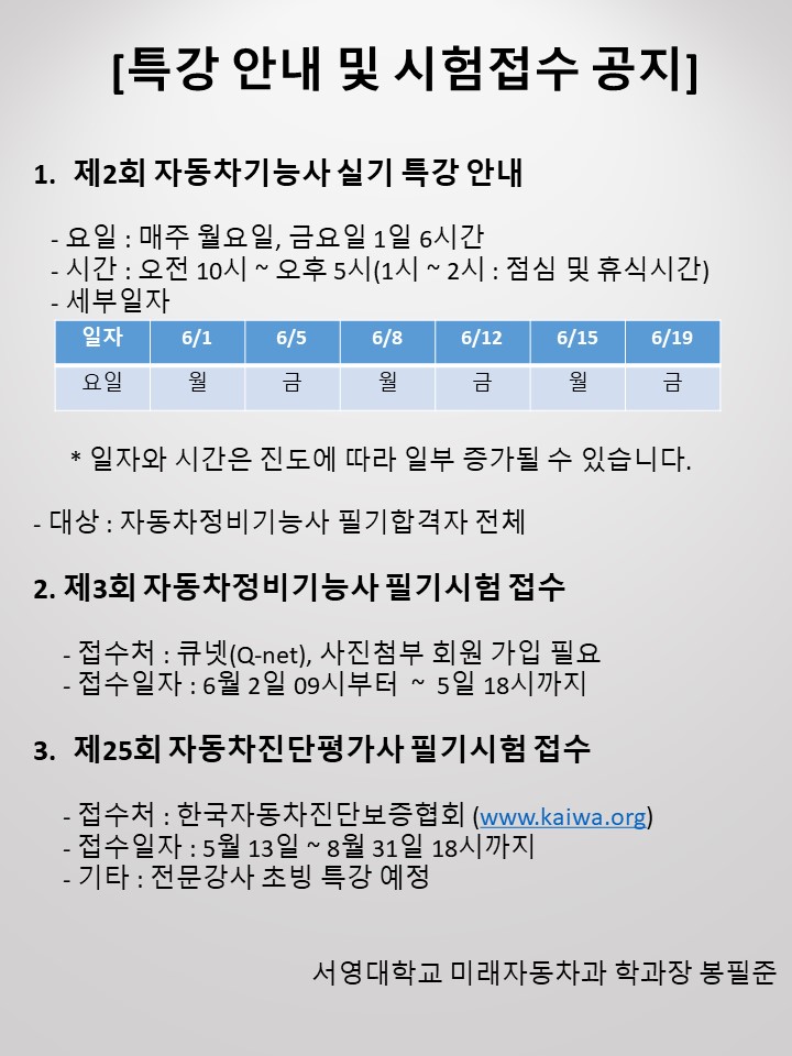 수도권 서북권 유일한 자동차관련 국가기술실기시험장 대학 !
