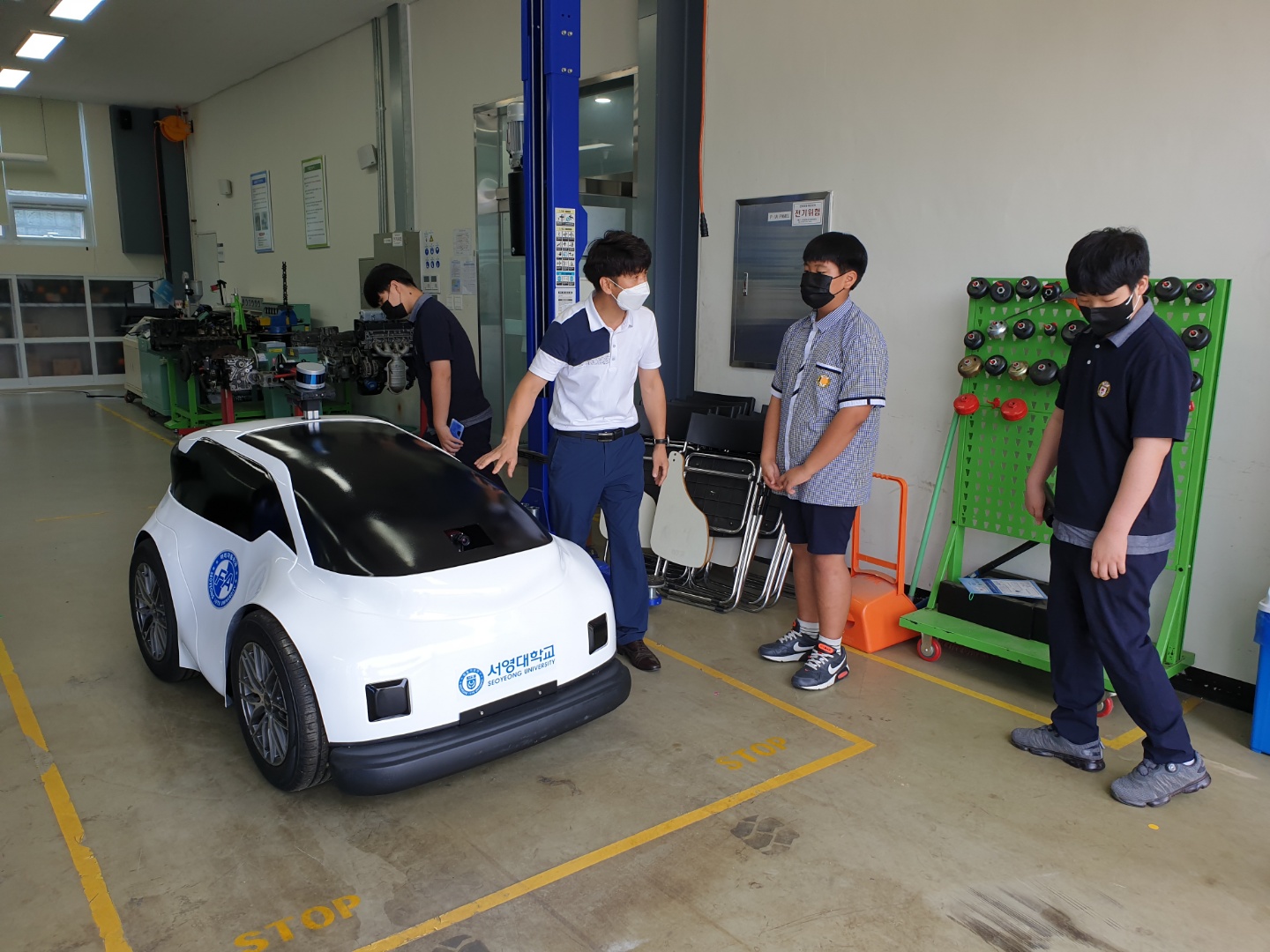 파주시 진로체험지원세터 주관으로 파주 문사동중학교 1학년 학생들이 미래자동차과에서 미래자동차 산업에 대해서 진로 체험을 했습니다. 문산동중학교 학생분들이 수업에 적극참여를 해주시고 대답도 열심히 잘 해주셔서 교수님께서 더 열정적으로 수업을 하실수 있었습니다. 수업뿐만 아니라 미래자동차과에 배치되어있는 지게차와 자동차운전 VR시뮬레이터를 체험을 통해 더욱더 수업을 즐겁게 재미있게 할 수 있었습니다. 그리고 실습장으로 와서 쏘울 전기자동차, 토요타 씨에나 하이브리드 자동차 시동거는 소리를 듣고, 배우며 친환경 자동차를 좀 더 이해할 수 있었습니다. 미래자동차과에서 보유한 첨단 자율주행자동차를 보면서 앞으로 4차 산업의 주인공들이 될 문산동중학교 학생들은 각자의 꿈을 그려보았습니다. 자율주행자동차를 디자인하는 디자이너 ~ 설계하는 설계엔지니어 ~ 제작, 생산하는 엔지니어~ 고장난 자율주행차를 고치는 정비엔지니어~ 도로에 주행하는 자율주행자동차를 통제하고 제어하는 원격제어 엔지니어~ 등 등 많은 꿈들을 꿀 수 있었던 시간이었습니다. 나중에 미래를 결정하는데 미래자동차과에 와서 경험했던것들을 통해서 도움이 되었으면 좋겠습니다! 수업과 실습을 열심히 참여해주신 문산동중학교 학생 여러분들 너무 감사하고 뜻깊은 시간이였습니다. 감사합니다~!!