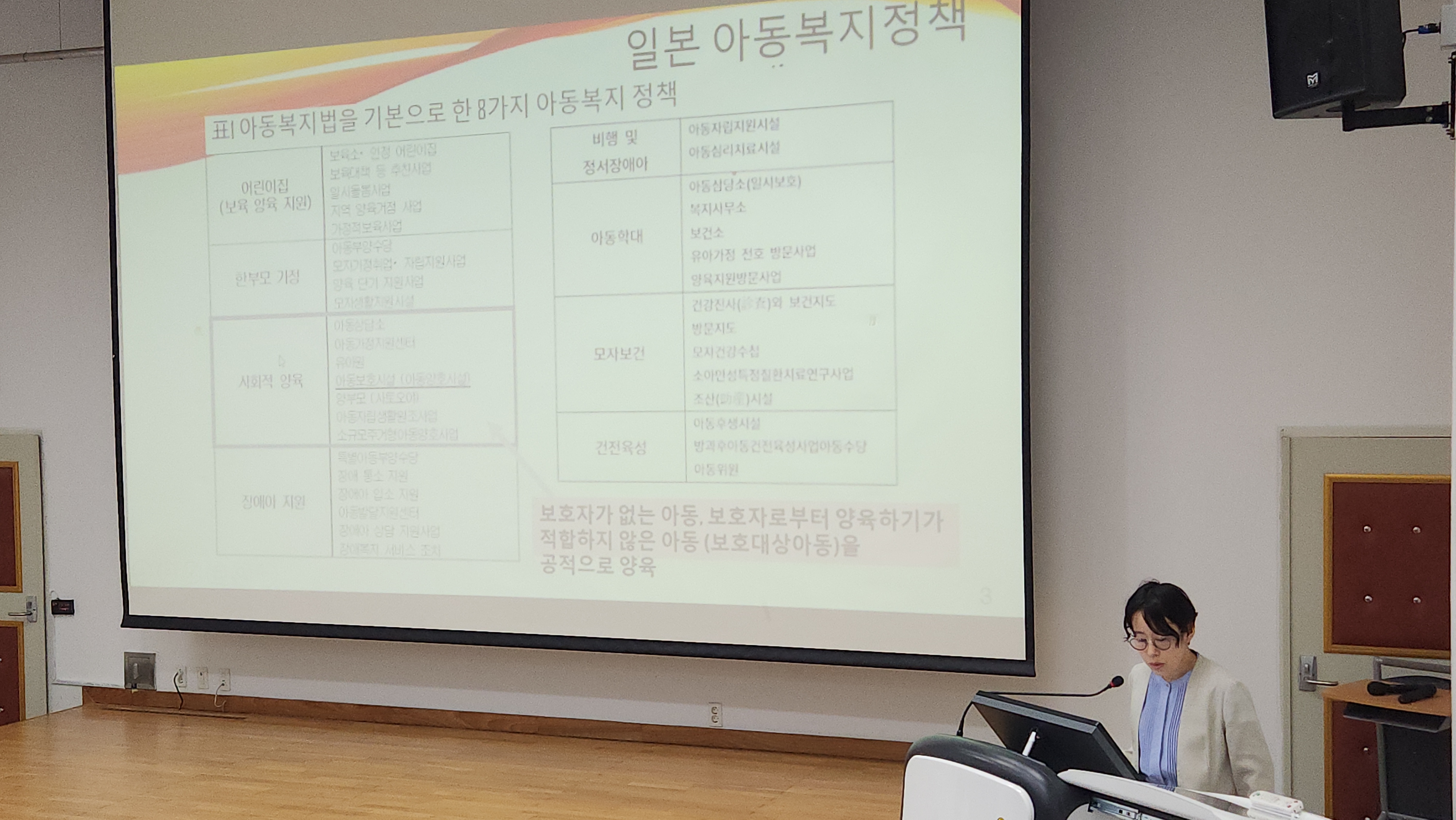 다나카 교수님은 ‘일본 보호아동 자립지원(Aftercare)의 과거·현재·미래’라는 주제로 특강을 진행해 주셨습니다.