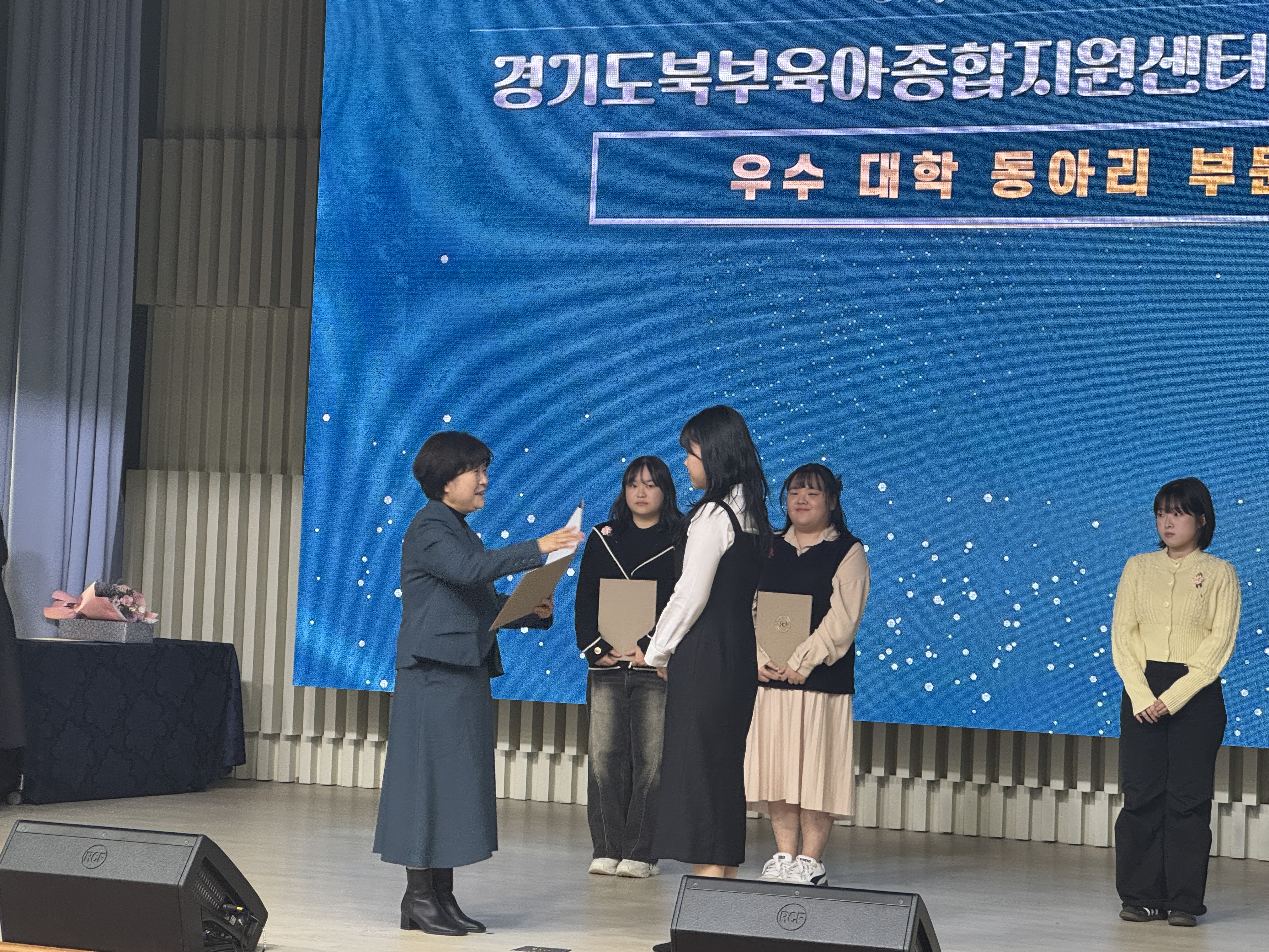 O. 우리대학(총장 김정수) 유아교육과(학과장 이지영)는 2024년 경기북부육아종합지원센터 대학 동아리 어린이집 연계 사업에서 우수동아리로 선정되어 수상을 하는 영애를 안았다. 경기도청 북부청사 평화누리홀에서 진행된 우수동아리 시상식은 대학 동아리와 어린이집 간의 연계와 협력을 통해 영유아 발달에 적합한 우수한 프로그램을 개발하고, 개발된 프로그램을 지원하는 봉사활동에 열심히 참여한 우수 대학 동아리를 선정하여 시상하는 행사이다.